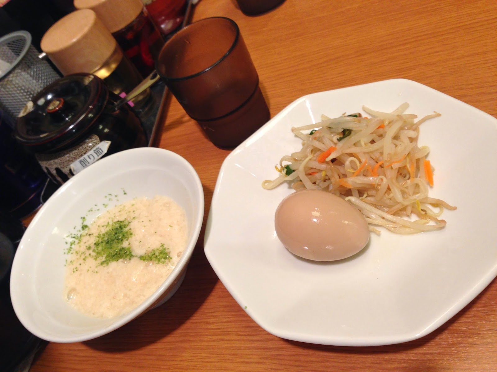 Em isn't into ramen, if you recall, so she gets hot rice with grated yam, an egg and some veggies.